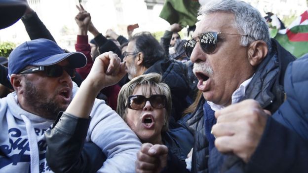 ومنذ الإعلان رسميا عن رغبة الرئيس المنتهية ولايته الترشح لولاية خامسة، نظمت العديد من المظاهرات في مختلف أرجاء الجزائر. ونزل مئات الآلاف من الأشخاص إلى الشارع، للتعبير عن غضبهم إزاء ما يصفونه ب"الولاية الزائدة عن الحد" لرئيس الدولة المنتهية ولايته. وحمل المتظاهرون لافتات كتبت عليها شعارات مناوئة للنظام القائم ولترشح الرئيس المنتهية ولايته.