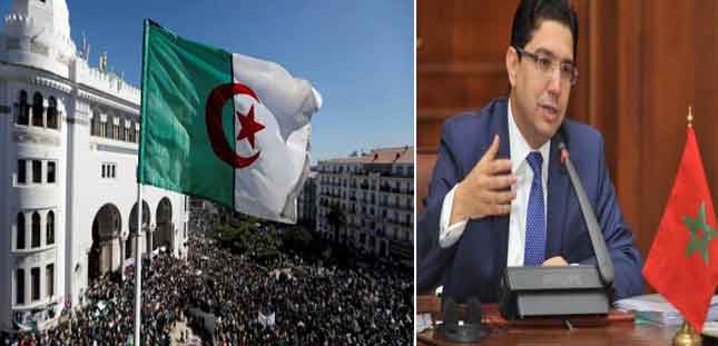 بوريطة: المغرب يؤكد موقفه "عدم التدخل" في الشؤون الداخلية للجزائر ناصر بوريطة، و مشهد من احتجاجات الجزائريين للمطالبة برحيل النظام