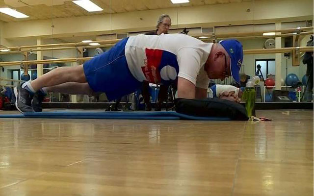 دخل مسن من الولايات المتحدة الأمريكية، يبلغ من العمر 71 عاما، موسوعة "غينيس" للأرقام القياسية بتمرين تحمل بدني خاص.