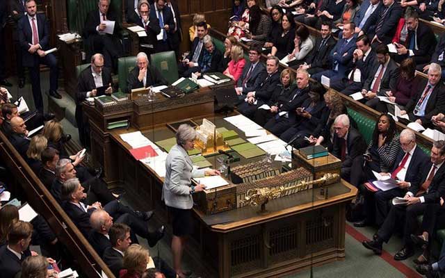ورفض النواب الاتفاق الذي تم التفاوض عليه مع قادة الاتحاد الأوروبي العام الفائت بـ344 صوتا مقابل 286 صوتا في جلسة طارئة في مجلس العموم.