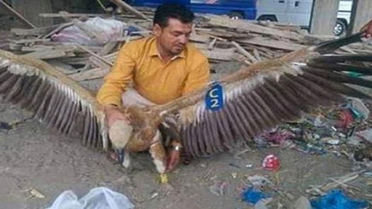 اشتبه أفراد الوحدات العسكرية اليمنية الحكومية المسيطرة على مدينة تعز بأن نسرا أبيض كبيرا يتجسس لصالح الحوثيين.