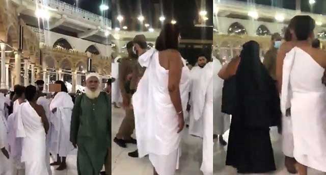 تداول رواد مواقع التواصل الاجتماعي، مقطعا مصورا أثار جدلا واسعا، قالوا إنه لسيدة ترتدي ملابس العمرة الخاصة بالرجال، داخل الحرم المكي خلال تأدية المناسك.