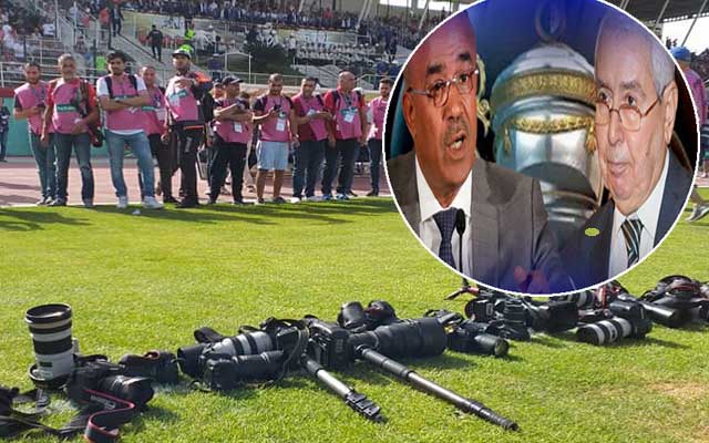 من جهته، احتج المصورون الصحفيون،اليوم السبت، بملعب مصطفى تشاكر بالبليدة، ورفضوا تصوير "البرتوكول" الوزاري، وذلك عقب منعهم من تصوير إحماءات فريقي شباب بلوزداد، وشبيبة بجاية بمناسبة نهائي كأس الجزائر بدون وجه حق.