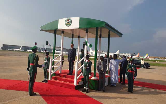 وقد خصص لرئيس مجلس النواب استقبال رسمي وتم عزف النشيدين الوطنيين المغربي والنيجيري، كما استعرض المالكي تشكيلة من الحرص الجمهوري النيجيري التي أدت التحية الرسمية لممثل الملك.