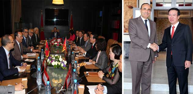 الحبيب المالكي( يسارا)، و Vo Van Thuong، وجانب من اللقاء لأعضاء الصداقة البرلمانية المغربية - الفيتنامية
