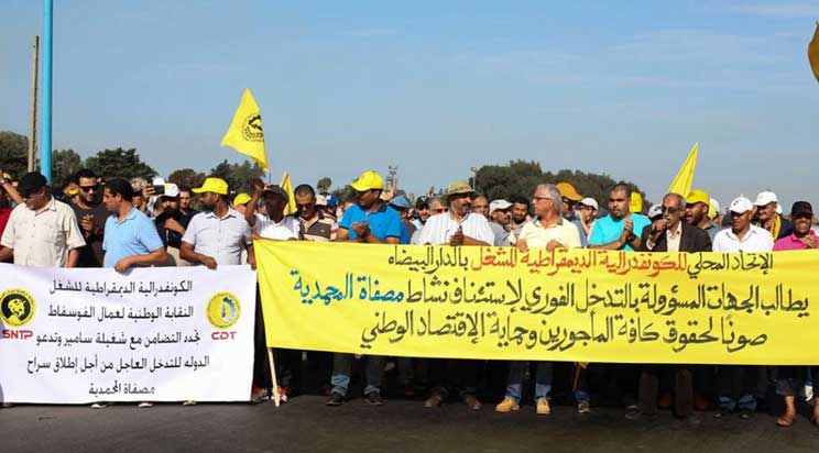 في تصعيد جديد، أعلن المكتب النقابي الموحد للكونفدرالية الديمقراطية للشغل بشركة سامير، في اجتماع عقده بمقر النقابة بالمحمدية، يوم الجمعة 12 يوليوز 2019، عن نداء للإنقاذ قبل فوات الأوان وقرار الاعتصام بالمدخل الرئيسي للشركة بالمحمدية على الطريق الساحلية، ابتداء من 6 مساء ليوم السبت 3 غشت 2019، في إطار البرنامج النضالي المفتوح منذ 4 سنوات، من أجل الإصرار على المطالبة بحماية حقوق المأجورين وإنقاذ المصفاة المغربية للبترول من الإقبار والمسح من الخريطة، تماشيا مع مخططات اللوبيات الضاغطة والمستفيدة من الوضعية الراهنة.