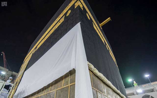 رفعت الرئاسة العامة لشؤون المسجد الحرام والمسجد النبوي الجزء السفلي من كسوة الكعبة المشرفة بمقدار ثلاثة أمتار تقريباً وتمت تغطية الجزء المرفوع بإزار من القماش القطني الأبيض بعرض مترين من الجهات الأربع وذلك جرياً على العادة السنوية وحسب الخطة المعتمدة لموسم الحج لهذا العام 1440هـ.