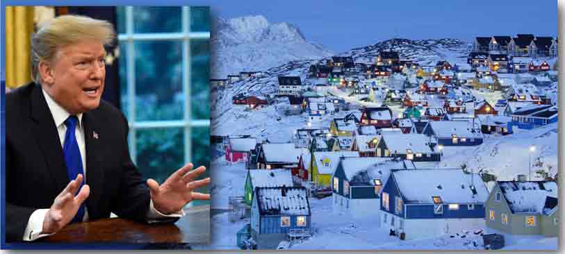 الرئيس الأمريكي، ووفقا لمصادر مطلعة من البيت الأبيض، يبدي اهتماما متزايدا بالسؤال حول إمكانية شراء جزيرة غرينلاند الدنماركية من أجل ضمها إلى الولايات المتحدة الأمريكية. حيث يناقش باهتمام موضوع الجزيرة ومواردها بالإضافة لأهميتها الجيوسياسية وإمكانية توسيع الوجود العسكري الأمريكي في القطب الشمالي.