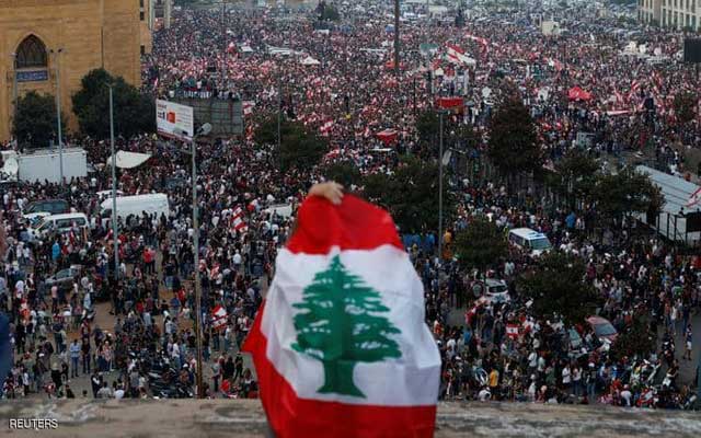 رد متظاهرون لبنانيون، الإثنين 21 أكتوبر2019، على حزمة الإصلاحات الاقتصادية التي تبنتها الحكومة اللبنانية، وأعلنها رئيس الوزراء سعد الحريري، بالهتاف: ”الشعب يريد إسقاط النظام“.