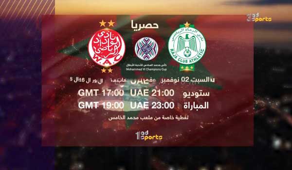 أشارت قناة أبوظبي الإماراتية، إلى موعد "الديربي البيضاوي" بين الرجاء و الوداد الرياضيين، برسم ذهاب دور الـ16 لكأس محمد السادس للأندية الأبطال.