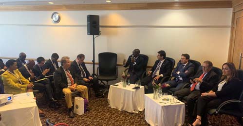 كما عرض الفرص التي تتيحها المملكة للمستثمرين الأفارقة حيث يضم السوق أكثر من مليار مستهلك بفضل اتفاقيات التبادل الحر البالغ عددها 55 اتفاقية.