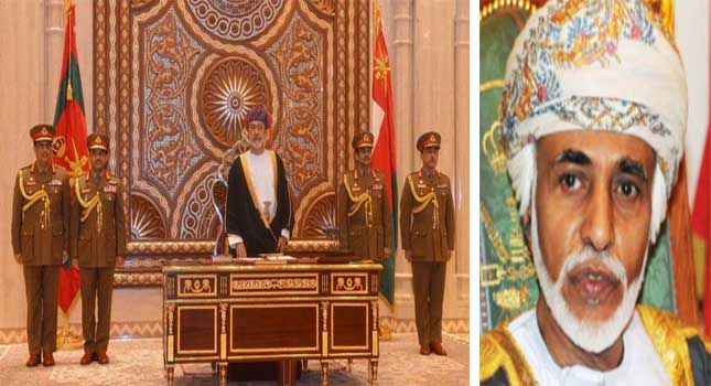 هذا هو خليفة الراحل قابوس بن سعيد سلطان عمان الراحل قابوس بن سعيد، والسلطان هيثم بن طارق آل سعيد(يسارا)