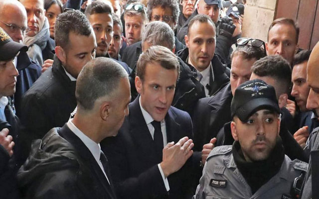 دخل الرئيس الفرنسي إيمانويل ماكرون، الأربعاء22 يناير2020، في مشاداة "قوية" مع عناصر الشرطة الإسرائيلية في مدخل إحدى الكنائس، بالقدس، في مشهد يذكر بموقف مماثل واجه الرئيس الراحل جاك شيراك في التسعينات.
