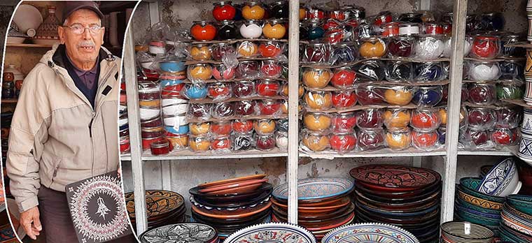 ورغم كبر سنه (73 سنة) وتراجع بصره إلى مستوى لا يطاق، حيث يستعمل نظاراته الطبية، ويتحمل مسؤولية إعالة أسرة بكاملها، مازال الصانع مصطفى النحيلة قادرا على مقارعة الريشة وألوان الصباغة، ورسم أبهى الرسومات على قطعه الخزفية التي يتعامل معها بسخاء وصبر لتجاوز مخاض الولادة العسير، و تصل أعماله الجميلة للسائح المغربي والأجنبي بصورة جيدة ومشرفة.