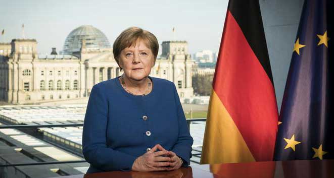 وقالت في كلمة متلفزة توجهت بها إلى مواطنيها "منذ الوحدة الألمانية، كلا، منذ الحرب العالمية الثانية، لم يشهد بلدنا تحديا يتوقف إلى هذا الحد على تضامننا".