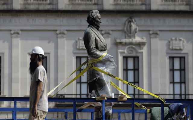 بسبب موجة العنصرية...إسقاط تمثال جورج واشنطن مؤسس أمريكا (مع فيديو) تمثال جورج واشنطن