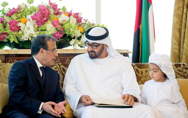 محمد أيت وعلي، سفير المغرب سابقا بالإمارات( المعين بالجزائر)، رفقة الشيخ محمد بن زايد ولي عهد أبوظبي