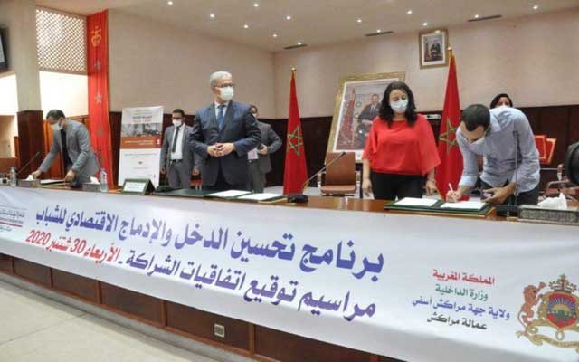 تم بمقر ولاية جهة مراكش آسفي يوم الأربعاء 30 شتنبر 2020 التوقيع على عدة اتفاقيات الشراكة الخاصة بمشاريع إحداث المقاولات لفائدة الشباب في إطار المبادرة الوطنية للتنمية البشرية برسم الشطر الأول للسنة الجارية.