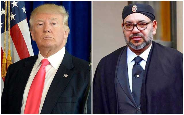 وأجرى الملك محمد السادس، أمس الخميس، اتصالا هاتفيا مع دونالد ترامب رئيس الولايات المتحدة الأمريكية، أبلغ خلاله الملك بقرار الولايات المتحدة الأمريكية الاعتراف لأول مرة في تاريخها بالسيادة التامة والكاملة للمملكة على صحرائها.