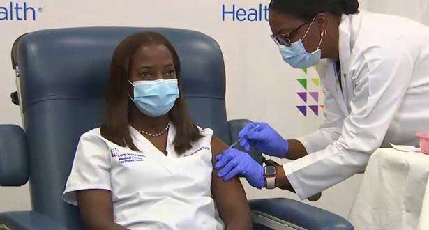 تلقت ممرضة في نيويورك الاثنين 14 دجنبر2020، أول لقاح مضاد لكوفيد-19 في الولايات المتحدة، البلد الأكثر تضررا بفيروس كورونا المستجد في العالم.