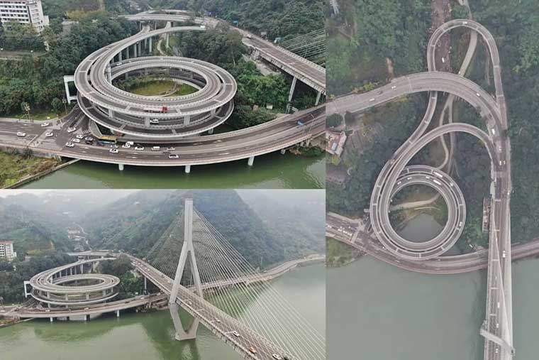 فلضمان انسيابية تنقل السفن بالنهر، اعتمد المهندسون قنطرة عالية من نوع ponts à haubans لكي تمر السفن بسلاسة تحت القنطرة من جهة، وتم اختيار شكل لولبي على الضفة الأخرى لتأمين هبوط سلس للسيارات والشاحنات (وكأن القنطرة أضحت مصعدا للنزول والصعود للجسر) من جهة ثانية، مما أضفى بهاء على المنطقة وتم حل مشكل التنقل بثالث أطول نهر بالعالم (بعد النيل والأمازون). فنهر اليانغستي يبلغ طوله 6300 كلم، وينبع من جبال التبت ليصب في بحر الصين الشرقي (أي مايعادل تقريبا المسافة الفاصلة بين الرباط ومدينة بانغي، عاصمة إفريقيا الوسطى).