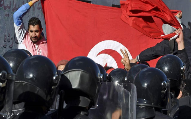 شهد وسط العاصمة التونسية، السبت30 يناير2021، احتجاجات طالبت بإسقاط النظام السياسي في البلاد وحركة النهضة الإخوانية، التي تعد أبرز دعائمه، في رفع لسقف مطالب الاحتجاجات التي اندلعت قبل أيام.