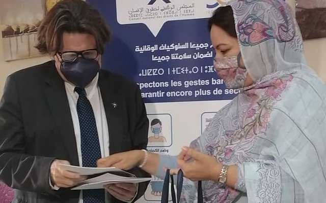 كورونا يعدل برنامج "توحيد الصحراويين" ممثل "المجموعة الدولية لدعم إعادة توحيد الصحراويين" (يسارا) خلال استقباله من طرف ميمونة السيد رئيسة لجنة حقوق الإنسان بالداخلة