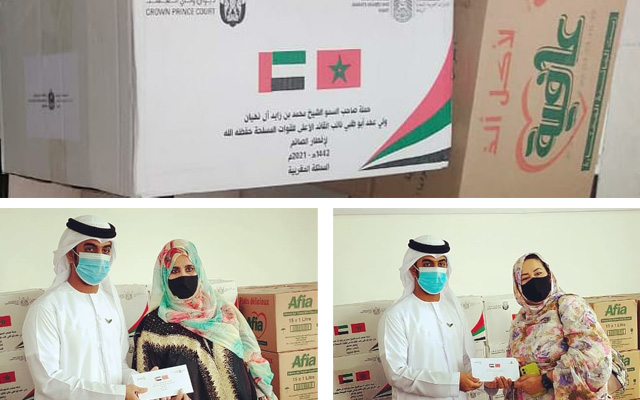 أشرف عيسى علي البلوشي، القنصل العام بالإنابة يوم الثلاثاء 27 أبريل 2021، على توزيع حصص من مشروع إفطار الصائم بمكرمة من الشيخ محمد بن زايد آل نهيان ولي عهد أبوظبي، لفائدة عدد من الجمعيات الخيرية والإنسانية بمدينة العيون.