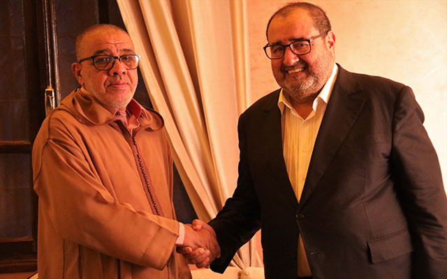 رجل الأعمال الصبار يلتحق بحزب "الوردة " للظفر برئاسة بلدية زاكورة محمد الصبار( يسارا) رفقة إدريس لشكر الكاتب الأول لحزب الوردة
