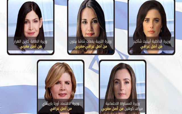 وذكر المصدر أن أغلب الوزيرات اللائي حصلن على حقائب في حكومة إسرائيل الجديدة ينحدرن من أصول مغربية وعراقية.