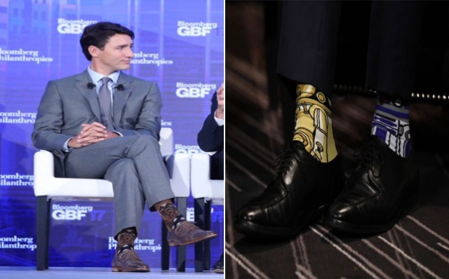 وكان ترودو، المعروف بمزاحه القوي في ما يتعلق بالجوارب، قد ارتدى في وقتٍ سابق من هذا العام زوجاً من الجوارب غير المتطابقة عليها رسومات من سلسلة أفلام "سطار وورز". وكان ذلك في يوم 4 مايو الماضي، والمعروف أيضا باسم "يوم حرب النجوم".