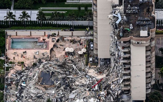 دخلت أعمال البحث عن ناجين في أنقاض مبنى انهار قرب ميامي في فلوريدا، الجمعة 25 يونيو 2021، يومها الثاني فيما تأكد مقتل أربعة أشخاص حتى الآن ولا يزال 159 شخصا في عداد المفقودين.