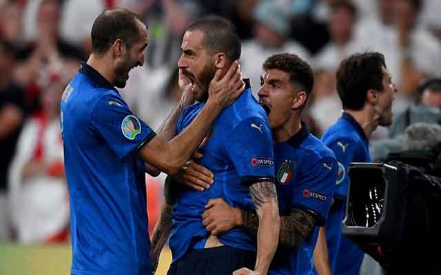 توج المنتخب الإيطالي بلقب بطولة كأس أمم أوروبا لكرة القدم، على حساب نظيره الإنجليزي، إثر فوزه عليه بركلات الترجيح (3-2) في المباراة النهائية التي جمعتهما يومه الأحد 11 يوليوز2021، في لندن. وباغت الإنجليزي لوك شاو (26 عاما) مدافع فريق مانشستر يونايتد، منتخب الزرق بهدف سريع سجله في الدقيقة الثانية من انطلاق صافرة البداية، في مرمى الحارس الإيطالي جانلويجي دوناروما.
