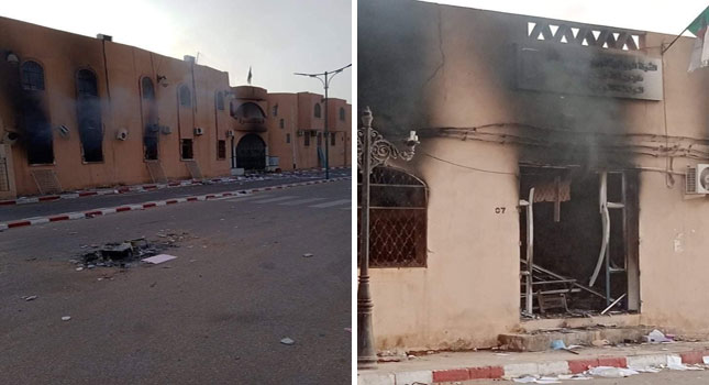 غليان في الجزائر...محتجون يضرمون النار في مقر بلدية بريان النار تلتهم بلدية بريان بولاية غرداية