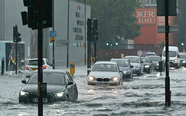 غمرت مياه الفيضانات شوارع العاصمة البريطانية لندن ما اضطر السلطات إلى تعليق سير الحافلات والسيارات. كما غمرت المياه أنفاق المترو بكميات كبيرة مع استمرار هطول الأمطار والعواصف الرعدية على أنحاء متفرقة من البلاد.