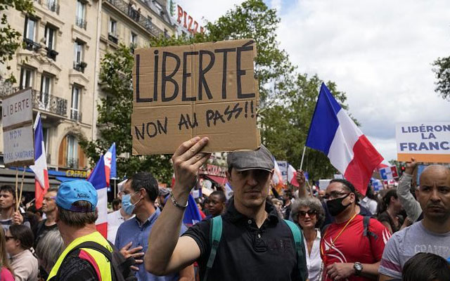 وجمعت الاحتجاجات ضد التصريح الصحي نحو 200 ألف شخص في كل أنحاء فرنسا يوم السبت الماضي، حيث دعا المنظمون إلى مزيد من التظاهرات في نهاية هذا الأسبوع.
