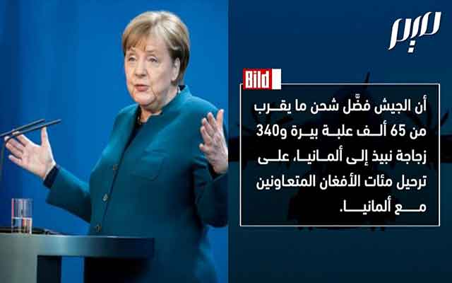 بثت المجلة التونسية "ميم ماغازين"، على صفحتها كبسولة مدتها 01 دقيقة و 51 ثانية ، تعود الى ما وصفته ب "فضيحة" كشفت عنها مؤخرا الصحيفة اليومية "بيلد" الألمانية . مشيرة إلى أنه على عكس الدول ، قامت طائرة عسكرية ألمانية في أفغانستان، باجلاء سبعة أفغانيين فقط، بعد استيلاء طالبان على الحكم، مفضلة، أي الطائرة الالمانية، نقل ما يقرب من 65000 علبة بيرا و 340 زجاجات من النبيذ، بدلاً من نقل السكان المحليين الافغانيين الذين تعاونوا مع سفارة ألمانيا لسنوات في كابل وغيرها.