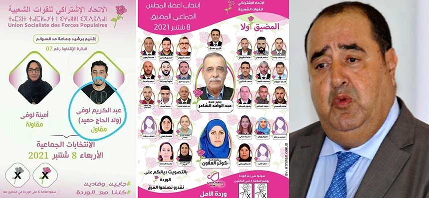 في نفس المنطقة، وتحديدا بمدينة المضيق، فوجئ الرأي العام الاتحادي بتغيير شعار الحزب الذي اختاره لخوض غمار استحقاقات 8 شتنبر، حيث وضع وكيل اللائحة الجماعية بالمضيق شعار: (المضيق أولا) بدل شعار: (المغرب أولا). هذا التحدي الذي رفعه وكيل اللائحة في وجه الزعيم إدريس لشكر وصفه بعض المراقبين بأنه شعار ينطوي على مخطط إقامة محمية مستقلة عن توجهات حزب الوردة الذي كان يحسب له ألف حساب من طرف "أم الوزارات" في زمن التزوير وسرقة انتصارات "وردة التغيير". الأغرب من ذلك أن وكيل اللائحة لم يجد حرجا في إخراج وتصفيف اللائحة الخاصة بالنساء دون وضع صور ثلاثة مرشحات ضمن تشكيلة فريقه وكأنهم نساء "حَاجْبَاتْ" من زمن "اَلسِّي سَيِّدْ".