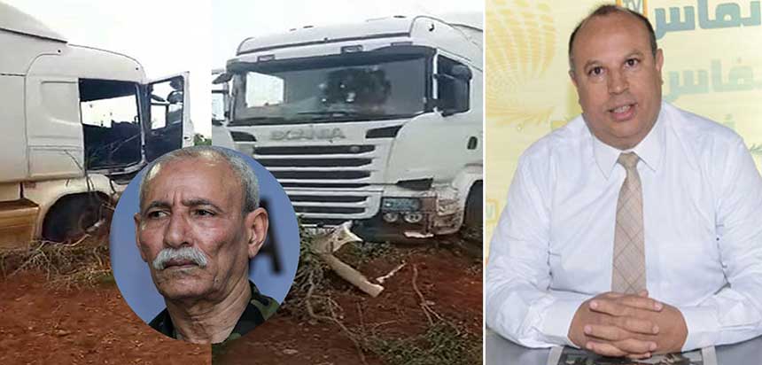 أريري: لنجعل هدفنا الأسمى إدراج البوليساريو في قوائم المنظمات الإرهابية المتعطشة للدماء!! عبد الرحيم أريري وصورة الشاحنتين اللتين تعرضتا لهجوم إرهابي بمالي (وفي الإطار زعيم البوليساريو إبراهيم غالي)