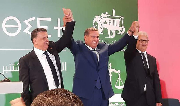 عزيز أخنوش يتوسط عبد اللطيف وهبي (يمينا) ونزار بركة (يسارا)