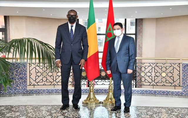 وأعرب رئيس الدبلوماسية المالية ،في ندوة صحفية عقب محادثاته مع بوريطة، عن اعتزازه بأن ينقل "إلى العناية السامية لصاحب الجلالة الملك محمد السادس رسالة السلام والصداقة والتضامن والأخوة التي بعثها إليه فخامة عاصمي غويتا، رئيس المرحلة الانتقالية ،رئيس دولة مالي، مع تحياته الأخوية وأطيب متمنياته بالسعادة لجلالة الملك، وللشعب المغربي الشقيق بالتقدم والازدهار".