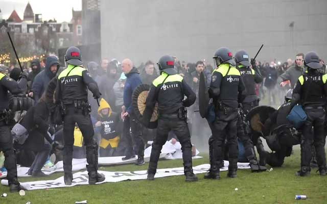 اعتقلت الشرطة الهولندية 30 شخصا في مظاهرة غير مرخص لها في العاصمة أمستردام حيث تجمع الآلاف أمام ساحة المتحف للاحتجاج على القيود الصارمة التي فرضتها السلطات لوقف انتشار فيروس كورونا وخصوصا متحور أوميكرون.