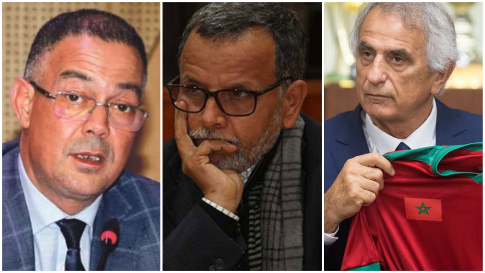 المغلشي: بعد هزيمة "أسود الأطلس"..هل نشهد تقديم استقالة جماعية أم تبريرات واهية؟ إدريس المغلشي يتوسط وحيد خاليلوزيتش ولقجع( يسارا)