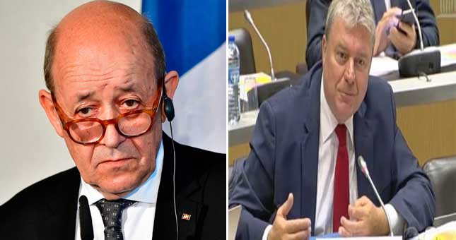 برلماني فرنسي يصفع وزير خارجية فرنسا التي عرّتها الانقلابات العسكرية بإفريقيا(مع فيديو) جون بول لوكوك ووزير الخارجية الفرنسي، جان إيف لودريان(يسارا)