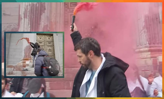 قام نشطاء تمرد العلماء، الذراع العلمية لمنظمة "تمرد إنقراض"، برش الطلاء الأحمر على درج وأعمدة مبنى البرلمان الإسباني يوم الأربعاء 6 ابريل 2022 في عمل يهدف إلى لفت الانتباه إلى مطالبهم للحكومة باتخاذ إجراءات طارئة بشأن تغير المناخ.