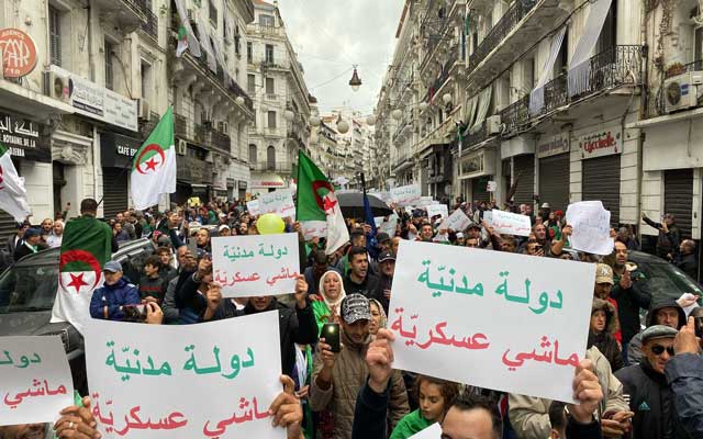 ولم يفت الشبان الجزائريين تذكير نظام عصابة العسكر الجزائري، بمطالب الحراك الشعبي الجزائري برفعهم شعار " دولة مدنية ماشي عسكرية".