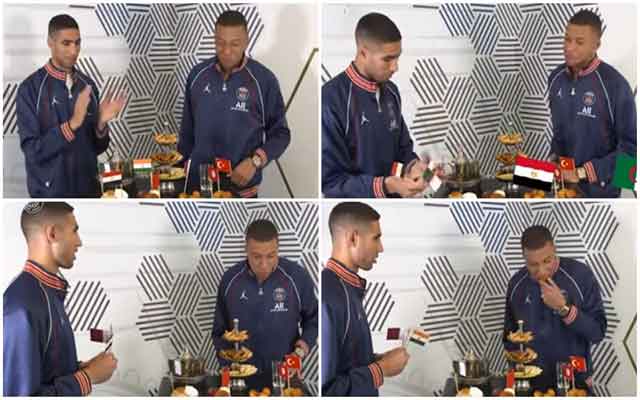 ومما جاء في هرطقة المزبلة الإعلامية الجزائري أن لاعب باريس سان جيرمان، الدولي المغربي أشرف حكيمي، قام باستفزاز الجزائريين على هامش تحدي معرفة أصول أطباق الحلويات مع زميله اللاعب الدولي الفرنسي "كيليان مبابي".