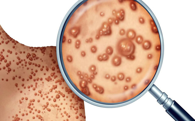 وتشمل أعراض جدري القردة الحمى وآلام العضلات وانتفاخ الغدد اللمفاوية والقشعريرة والإرهاق والطفح الجلدي على اليدين والوجه.