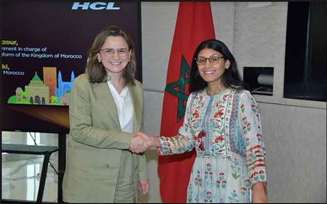 ترأست كل من غيثة مزور، وزيرة الانتقال الرقمي وإصلاح الإدارة، روشني نادار مالهوترا، رئيسة شركة "HCL Technologies" الهندية، يوم السبت 28 ماي 2022، بمدينة نويدا بجمهورية الهند، مراسيم التوقيع على مذكرة تفاهم لتفعيل مشروع استثماري بالمغرب يهدف إلى خلق آلاف مناصب الشغل ذات قيمة مضافة عليا في مجال البرمجة وخدمات تكنولوجيا المعلومات.