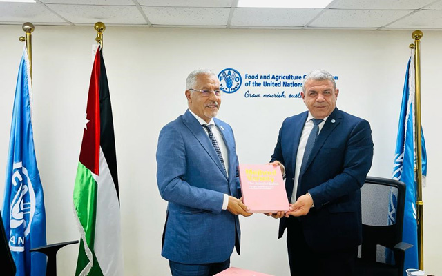 استقبل ممثل منظمة الأغذية والزراعة للأمم المتحدة ( الفاو ) في الأردن ، المهندس نبيل عساف الدكتور عبد الوهاب زايد أمين عام جائزة خليفة الدولية لنخيل التمر والابتكار الزراعي بالإمارات العربية المتحدة